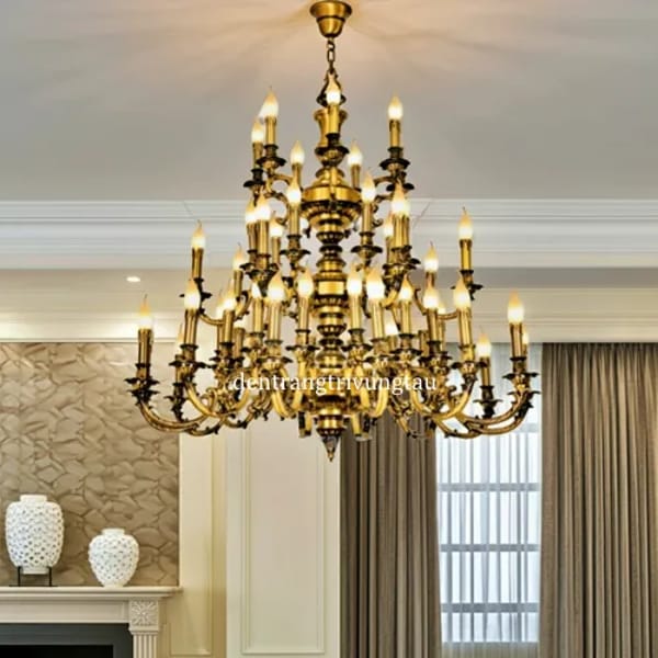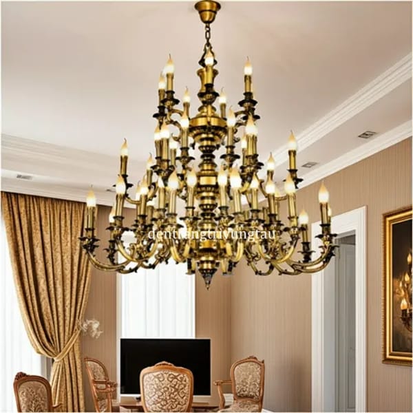 Đèn chùm cổ điển với thiết kế tinh xảo, mang nét đẹp sang trọng cùng ánh sáng ấm áp lan tỏa khắp không gian, tạo điểm nhấn đẳng cấp cho phòng khách, phòng ăn hoặc sảnh lớn. Sản phẩm được chế tác tỉ mỉ từ chất liệu cao cấp, màu vàng đồng thanh lịch, kích thước đèn rộng 105cm x H 130cm, phù hợp với các không gian từ 60 đến 90m². Đèn chùm không chỉ là vật dụng chiếu sáng mà còn là tác phẩm nghệ thuật nâng tầm vẻ đẹp nội thất của bạn.