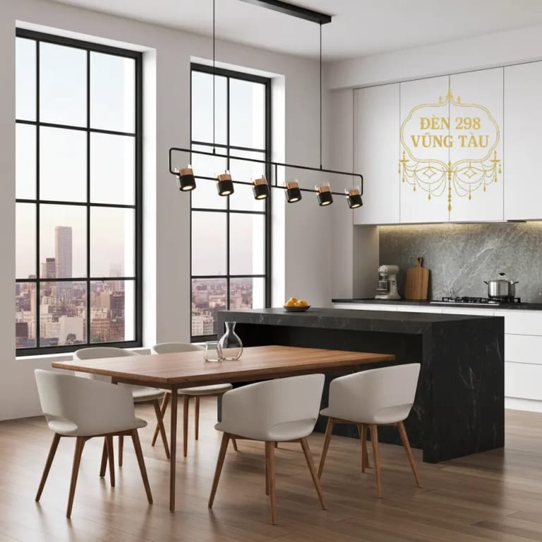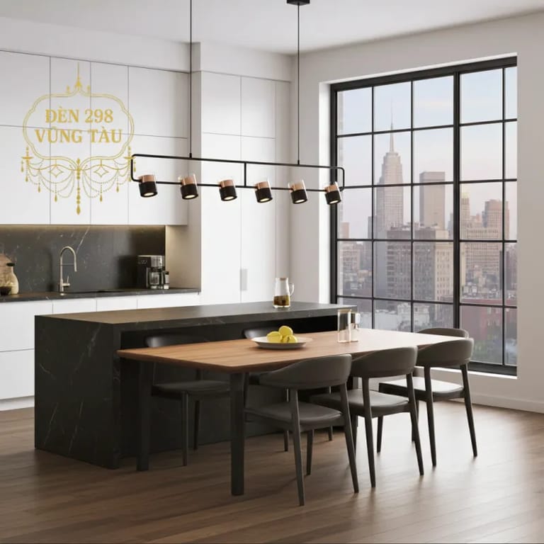 Đèn thả trần hiện đại với thiết kế sang trọng gồm 6 bóng đèn phối màu đen và vàng nổi bật, mang lại vẻ đẹp quý phái cho không gian sống. Khung kim loại chắc chắn, đảm bảo độ bền và an toàn khi sử dụng. Sản phẩm lý tưởng cho phòng ăn, phòng khách hoặc không gian làm việc hiện đại, giúp tăng điểm nhấn ấn tượng và sự ấm cúng cho căn phòng. Kích thước đèn 120 cm x 13 cm, dễ dàng lắp đặt và phù hợp với nhiều kiểu trần khác nhau. Đèn có thể sử dụng bóng LED tiết kiệm điện, nâng cao giá trị sử dụng lâu dài.
